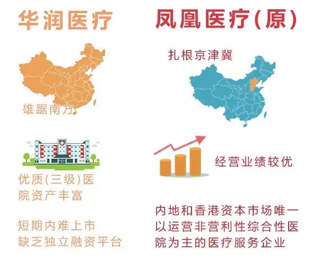 華潤自2015年1月開始接觸鳳凰醫(yī)療團(tuán)隊(duì)并初步溝通合作意向,經(jīng)過多次磋商籌劃交易方案,最終確定以資產(chǎn)換股權(quán)方式實(shí)現(xiàn)華潤醫(yī)療主要資產(chǎn)上市,并成為中國最大醫(yī)療服務(wù)集團(tuán)的單一最大股東。同期,“華潤鳳凰”與中信醫(yī)療簽署協(xié)議,以發(fā)股方式收購中信旗下2家營利性醫(yī)院。